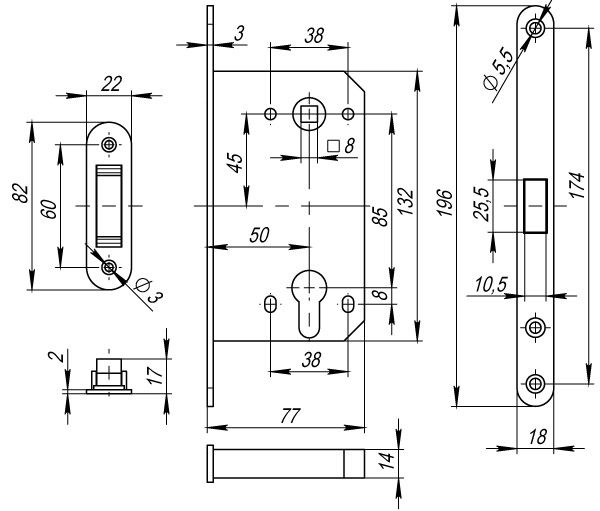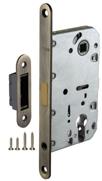 Корпус врезного замка Fuaro M85C серии MAGNET с магнитным механизмом изготовлен в соответствии с требованиями ГОСТ 5089-2003. Предназначена для установки в деревянные межкомнатные двери, подходит для дверей левого и правого открывания. Корпус выполнен из стали с надежным гальваническим покрытием. Магнитный механизм обеспечивает бесшумность работы защелки. Корпус врезного замка M85C с усиленной пружиной имеет высший 4 класс надежности (250 000 циклов открывания/закрывания). Отверстия под стяжные винты находятся на расстоянии 38 мм. Размер бэксета - 50 мм. Размер межосевого расстояния - 85 мм. Возможна установка дверных ручек на стяжные винты для более прочного крепления. Цвет: бронза. В комплектацию входят: ответная планка с магнитной вставкой и крепежная фурнитура в цвет изделия.